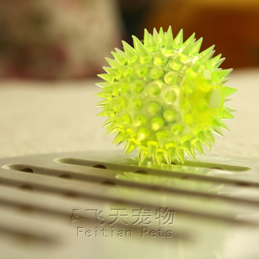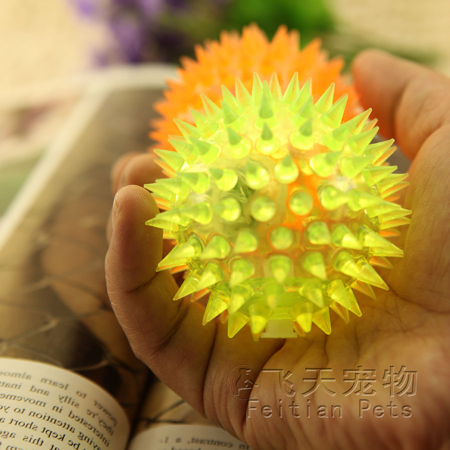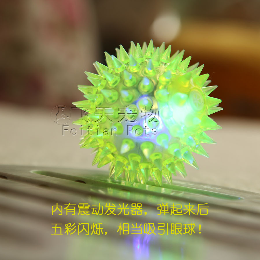 【寶貝說明】用力摔球,球會自動閃光。閃光彈力跳跳球內置紅藍兩色LED燈,發出七彩閃爍光芒,在燈光的照耀下很是漂亮!圓形的小球,震動開關,球往地上扔下或敲一下彈跳一下球就會閃亮,閃一會后自動熄滅,再震動再亮。一次震動時間長為14秒。內置發聲裝置,擠壓發出悅耳聲音。總之,這是一款有聲,有光彩,可滾動的多功能玩具,寵物肯定喜歡!