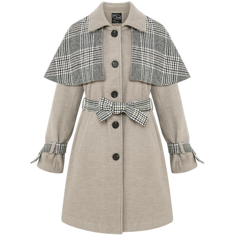 MG小象2018流行毛呢外套女中長款修身顯瘦2018新款個性收腰呢大衣