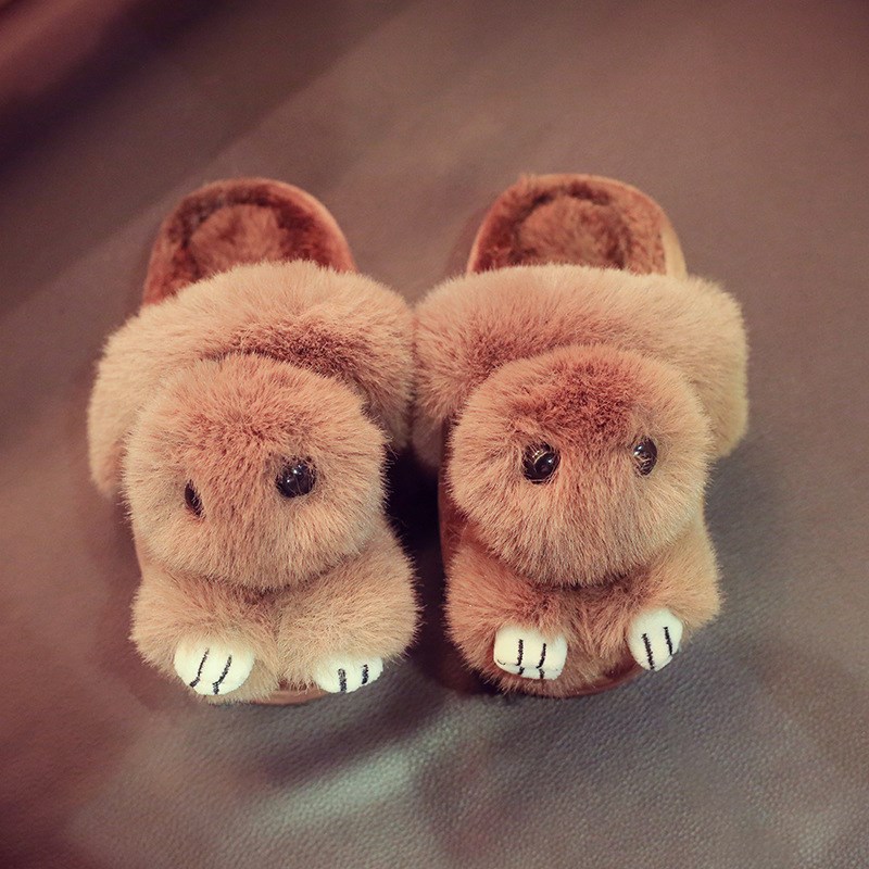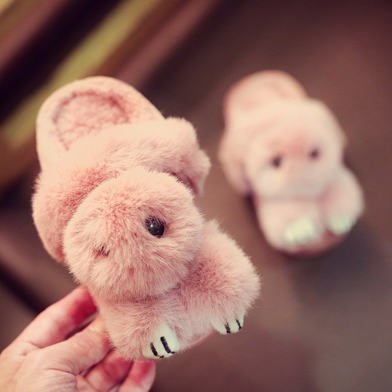 / 兒童棉拖鞋冬季女童毛毛可愛立體卡通兔子居家室內防滑親子拖鞋