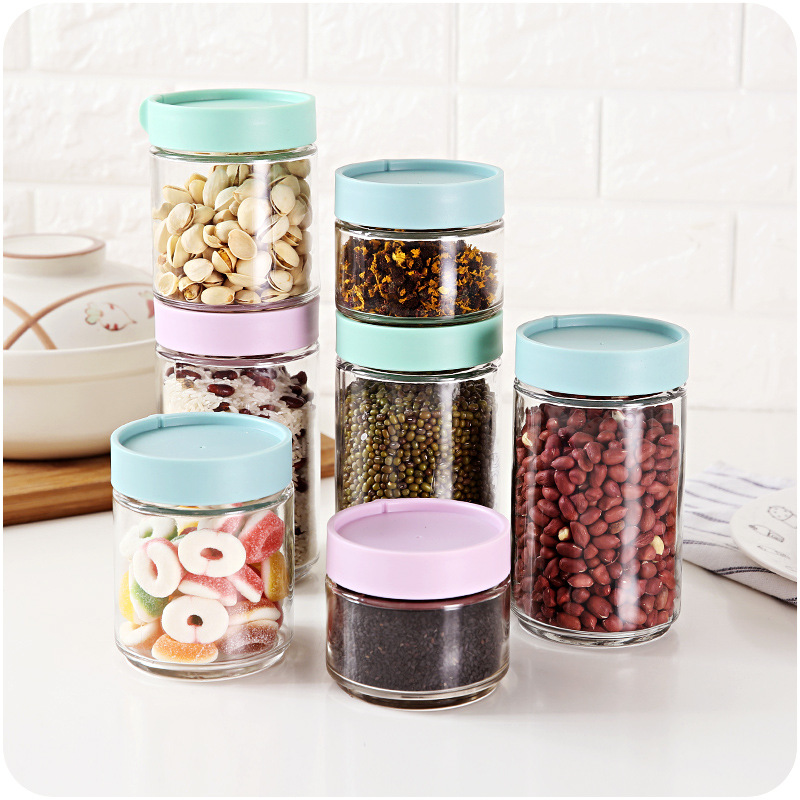 家居玻璃密封罐 廚房冰箱五谷雜糧密封瓶子積木式可疊加儲物罐子