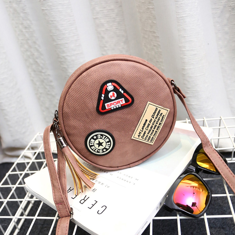 2-8歲韓版徽章個性小圓包兒童斜挎單肩包迷你流蘇時尚小包零食包