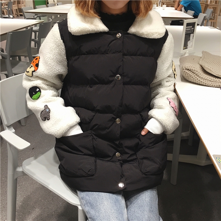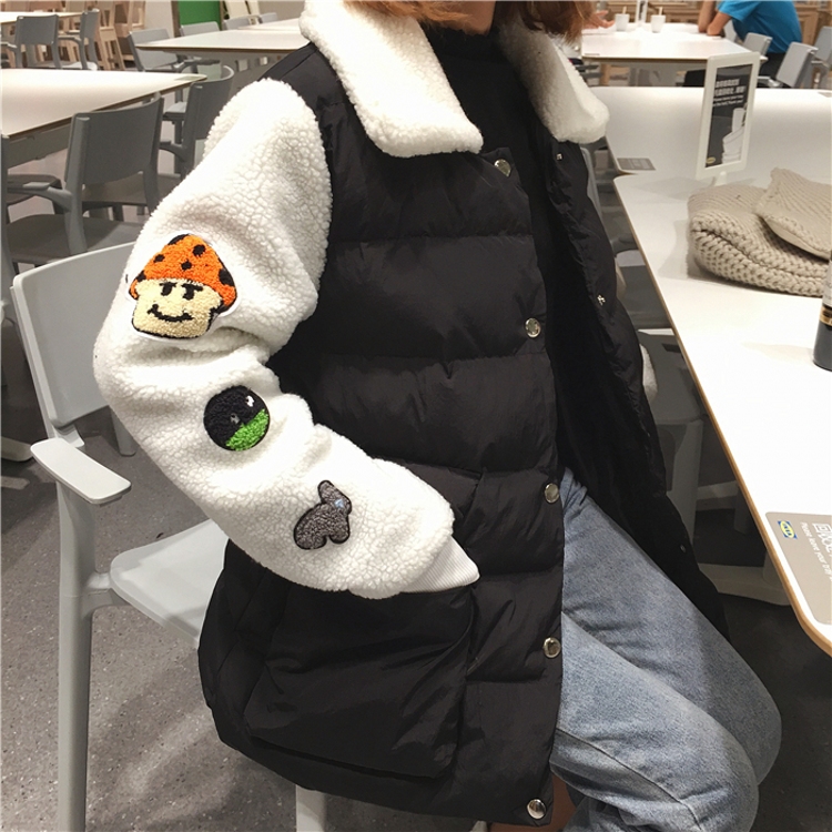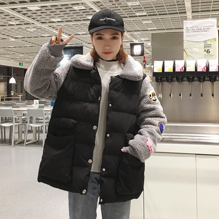 / 冬款韓國羊羔毛拼接卡通貼布長袖面包服寬松加厚棉衣棉服女