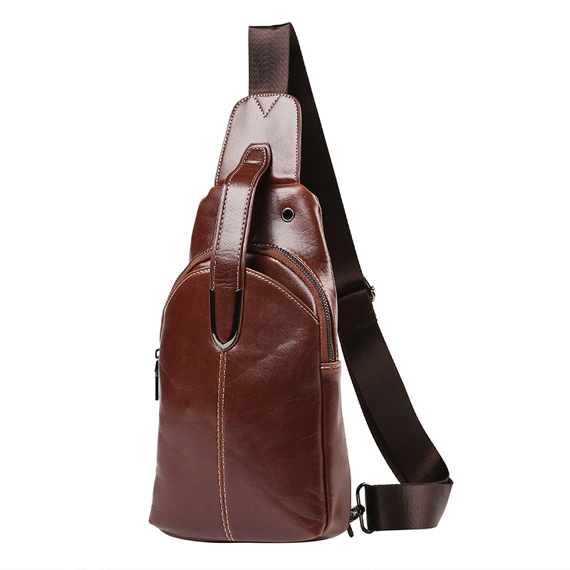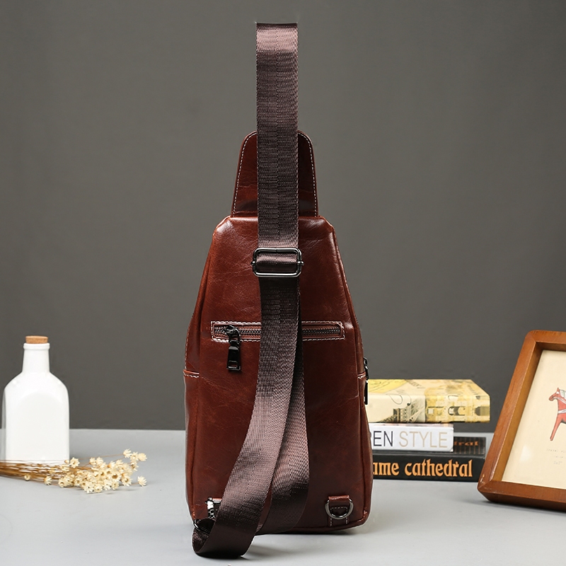 / 油蠟紋復古胸包新款瘋馬皮時尚男士胸包韓版男包休閑單肩斜跨包