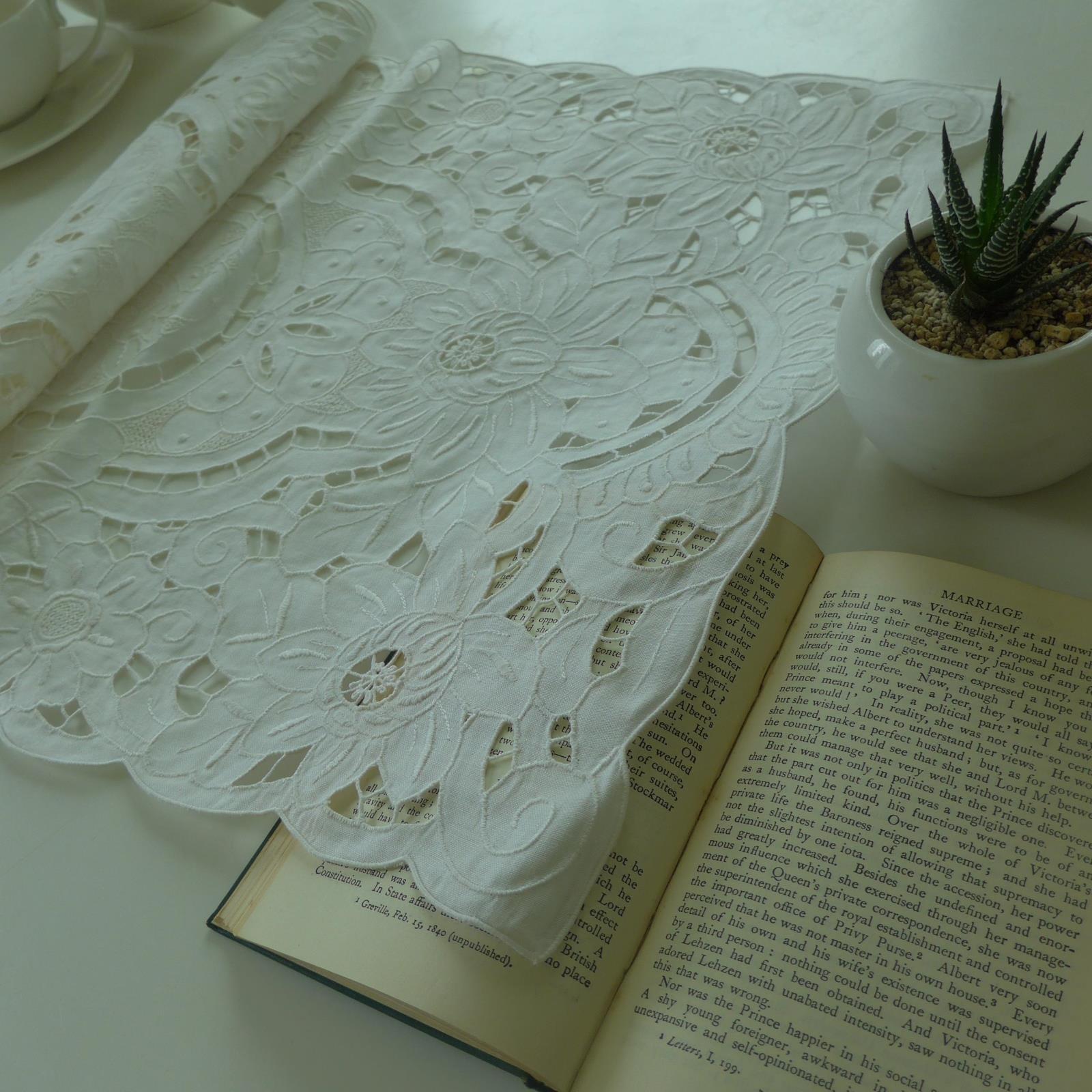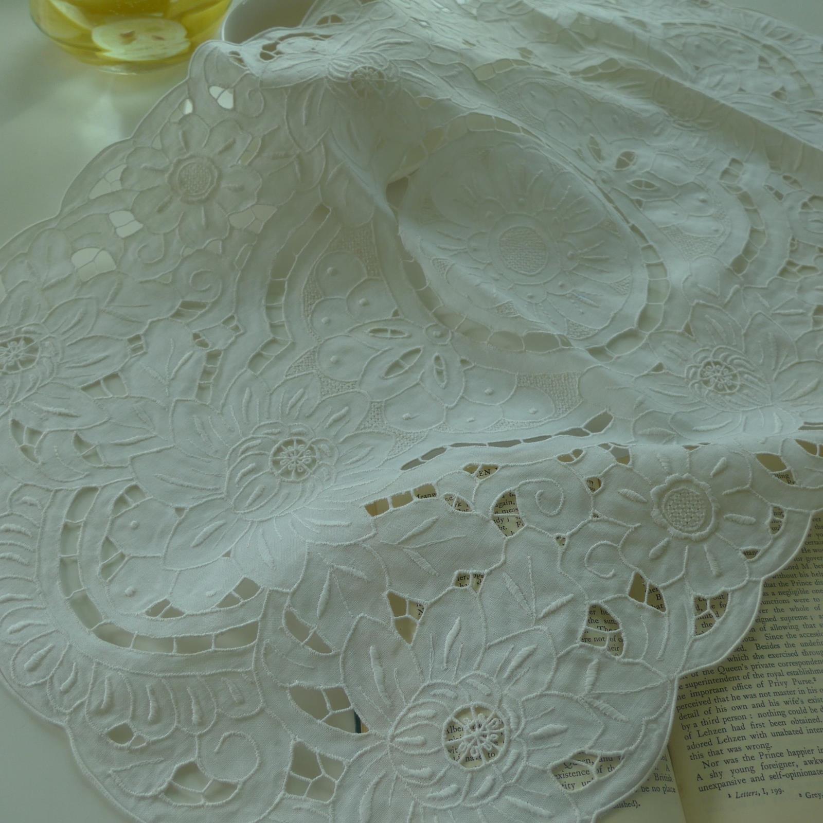 / 【白色莫奈】出口歐美田園簡約鄉村純棉刺繡鏤空杯墊盤墊餐墊