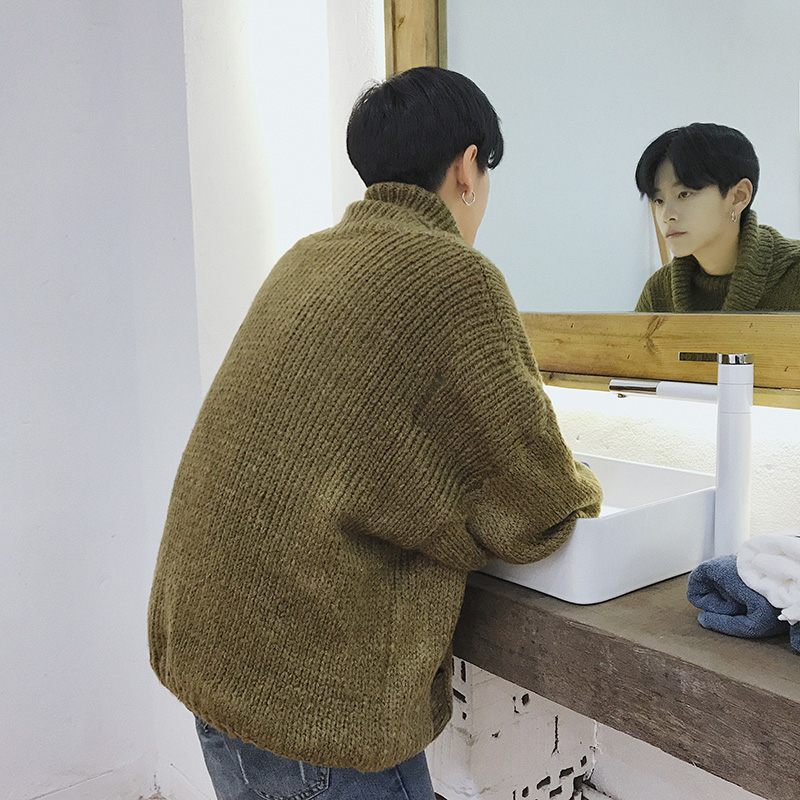 / 文藝男女店高領毛衣男士秋季韓版套頭打底針織衫潮流復古秋冬裝