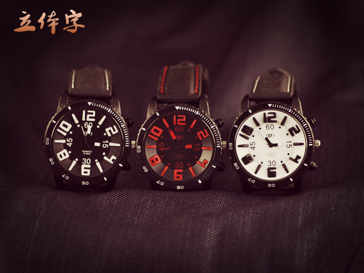 韓國原宿復古風超大表盤立體數字情侶手表中性男女中學生石英表潮
