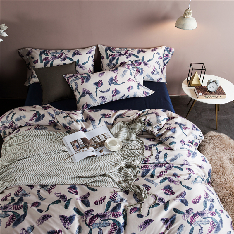 【白色莫奈】60支貢緞長絨棉四件套100%純棉標準加大床上套件