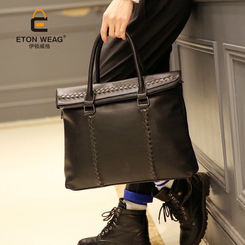 / 男士手提包韓版男包休閑包單肩包手提斜挎包條紋潮流商務包新款