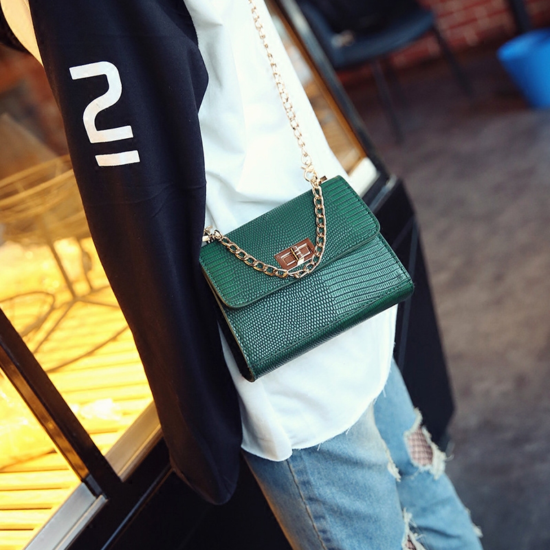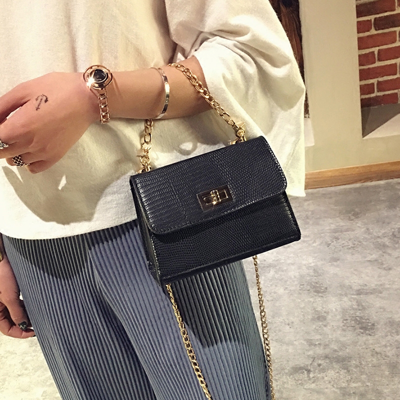 / 鏈條包包女新款蜥蜴紋單肩女包手提小包韓版迷你小方包斜挎包