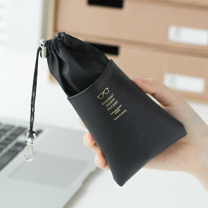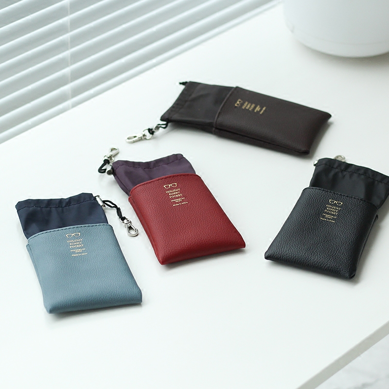 / 旅行便攜太陽眼鏡袋簡約束口收納袋皮面夾層鏡袋手機小物收納卡包