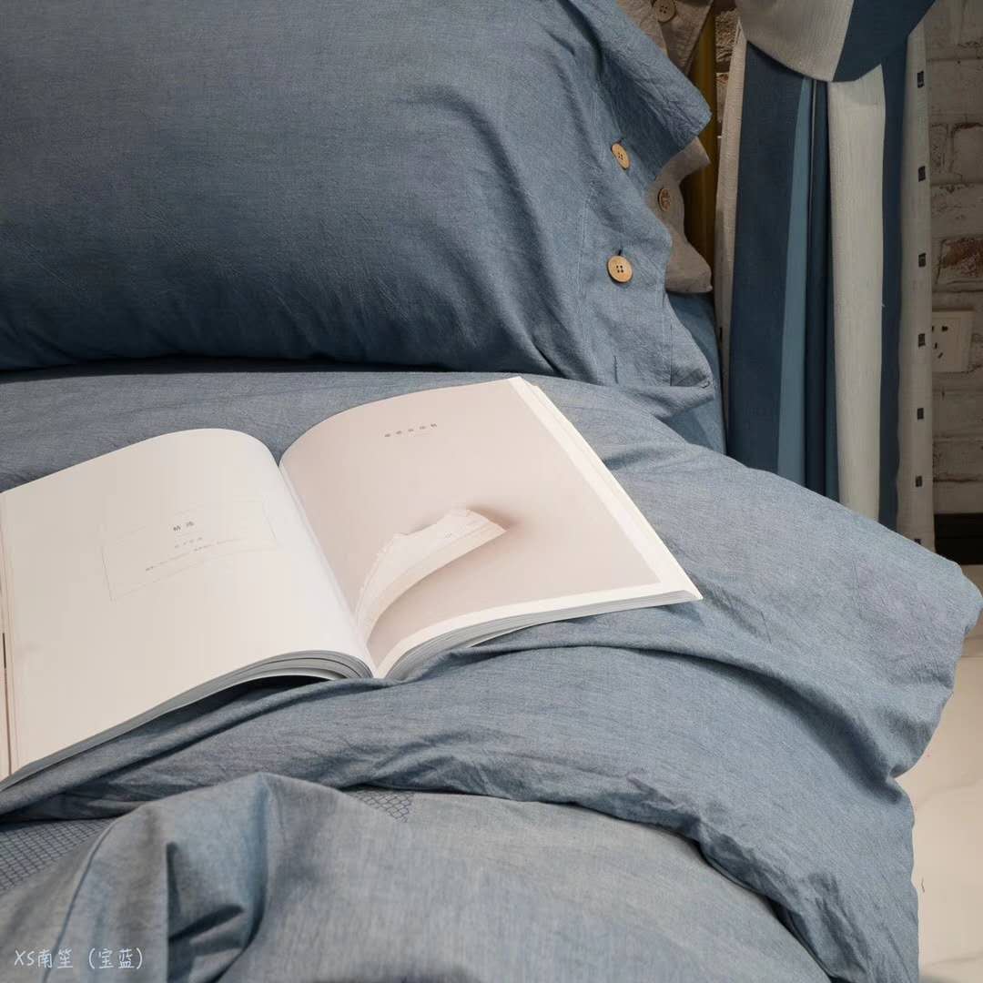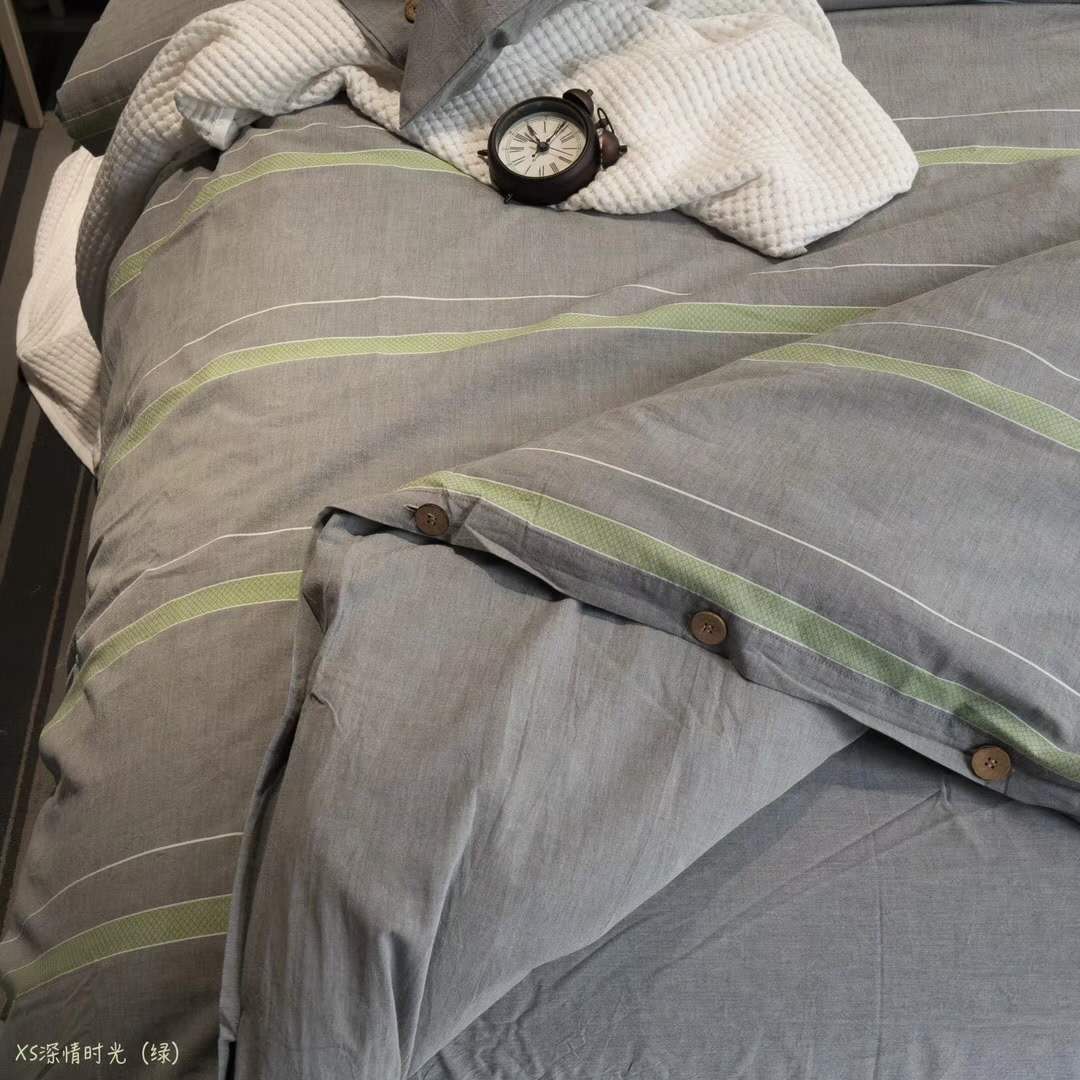 [白色莫奈]60支色織水洗棉時尚紳士風格簡約套件床上用品套件