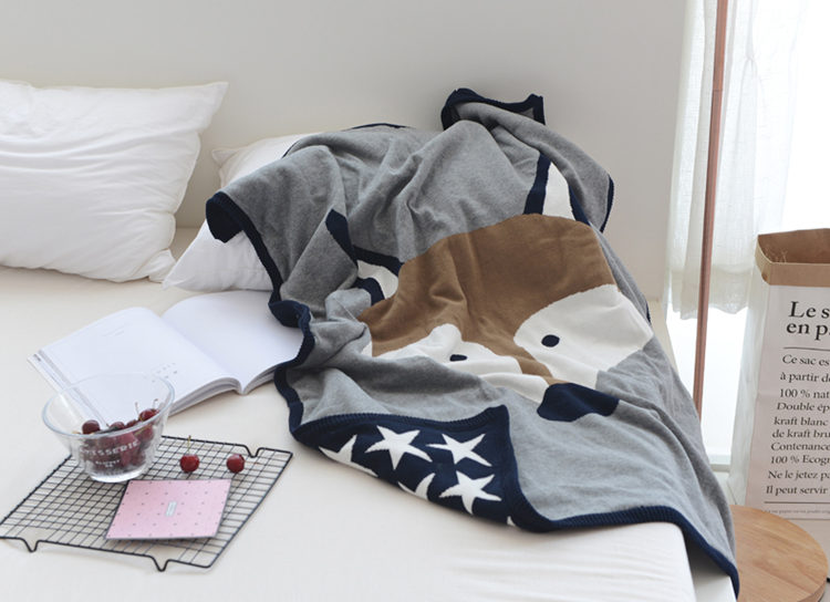 【白色莫奈】ins加厚重工針織毯子兩面提花狐貍兔子花型嬰兒蓋毯