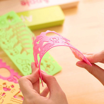 / 韓國文具創意卡通糖果色畫畫尺子速畫板美術尺繪畫模板尺學生畫圖