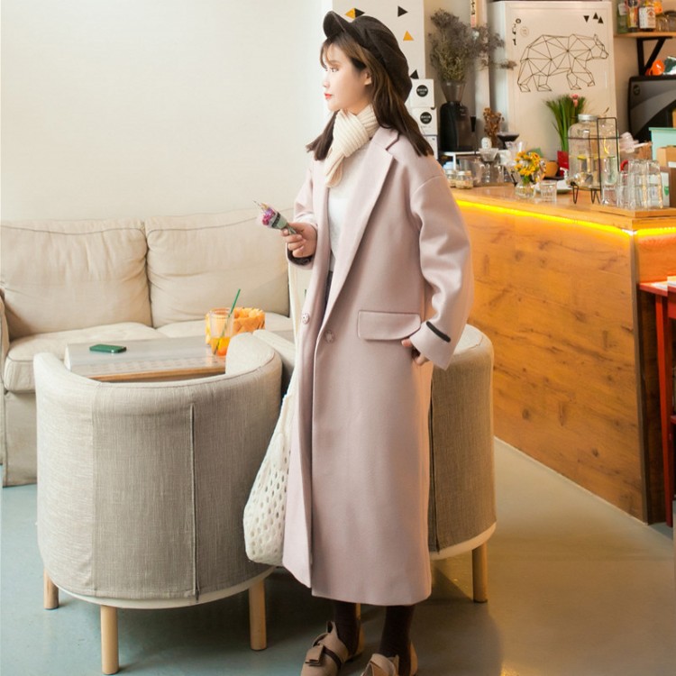 冬款韓國chic大衣純色西裝領長袖一粒扣中長款顯瘦毛呢外套女