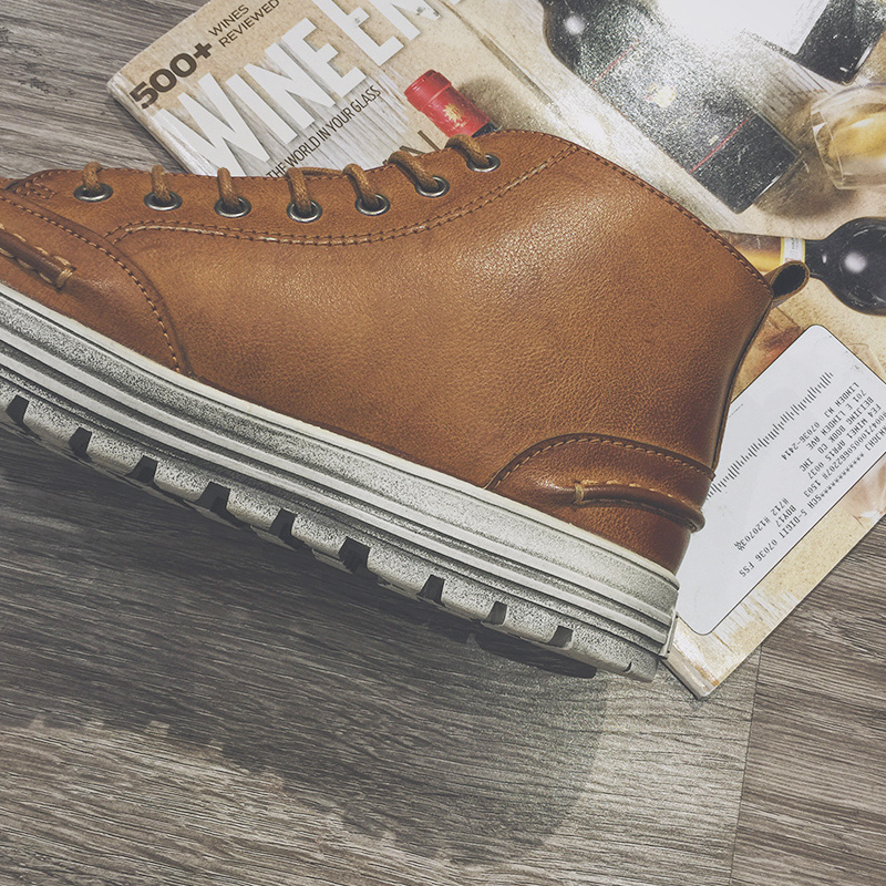 新款冬裝加絨休閑鞋韓版冬季高幫鞋馬丁鞋英倫短靴