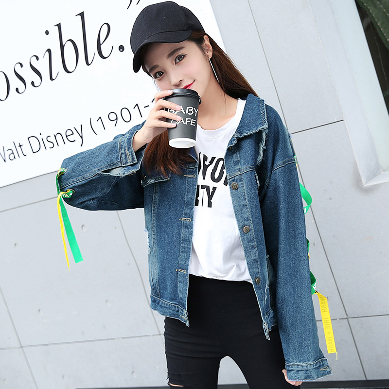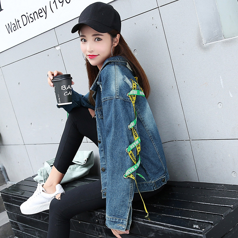 / 2017秋裝新款后背織帶牛仔外套長袖綁帶原宿女百搭韓版寬松學生潮