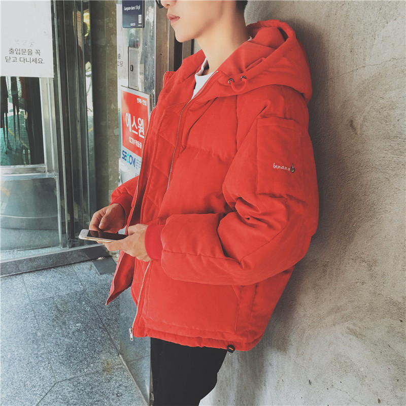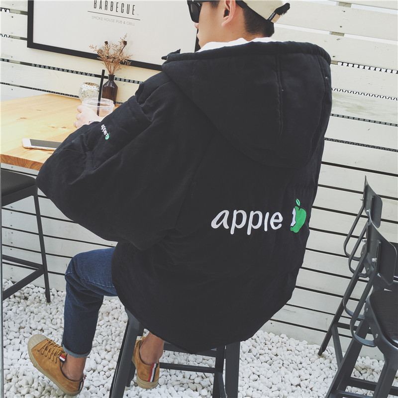 / 男裝冬裝水果刺繡韓版寬松連帽男士短款棉衣潮