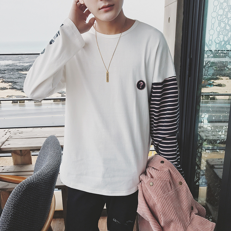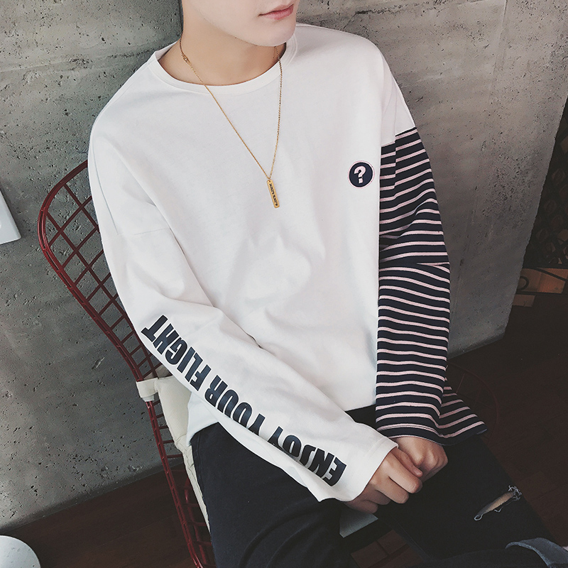 男裝韓版撞色圓領寬松條紋拼接袖男士衛衣外套