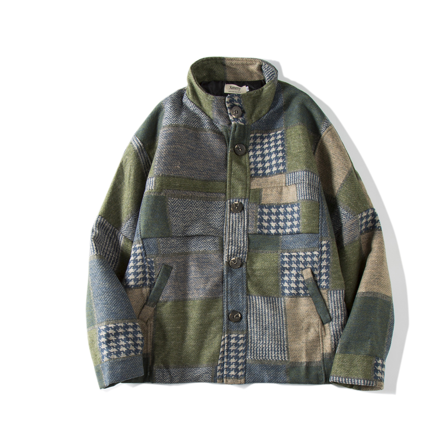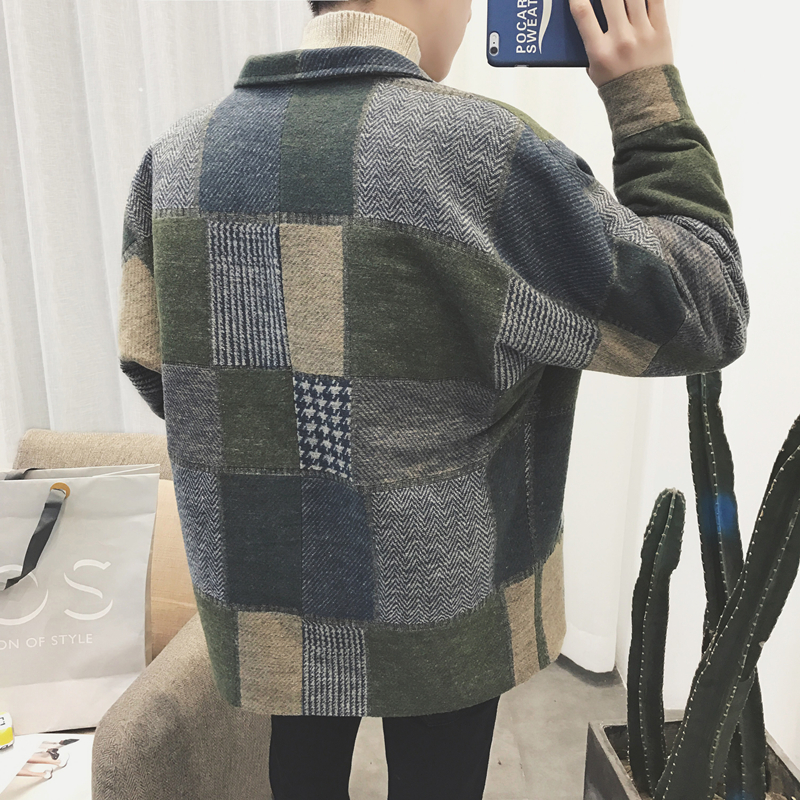 男士寬松風衣韓版潮流秋季港風復古格子毛呢外套短款大衣情侶裝男