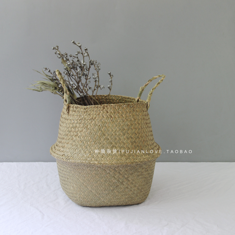 樸簡|ins北歐風格家居收納籃 手工草編臟衣籃 折疊筐 植物花籃
