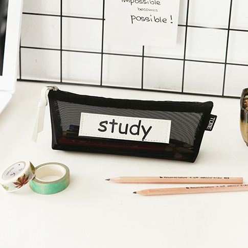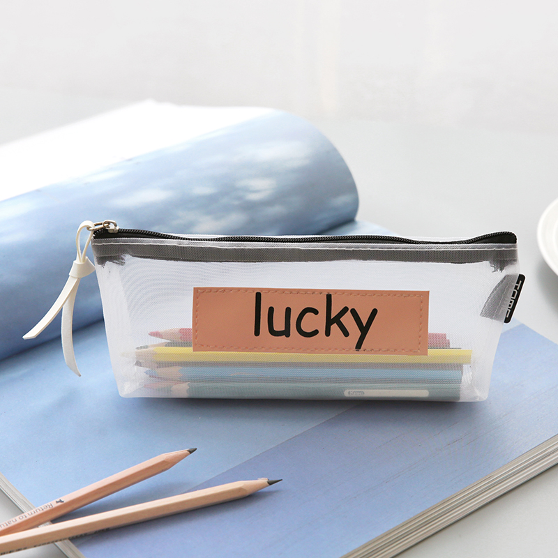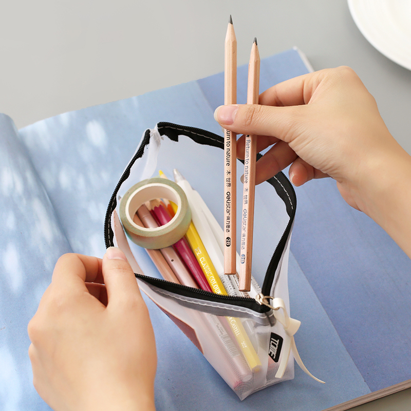 云木雜貨 透明網紗筆袋簡約小清新三角網格考試筆袋大容量文具袋