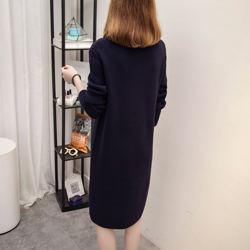 / 中長款套頭毛衣女秋冬韓版針織衫加厚毛衣裙毛線衣寬松拼色打底衫