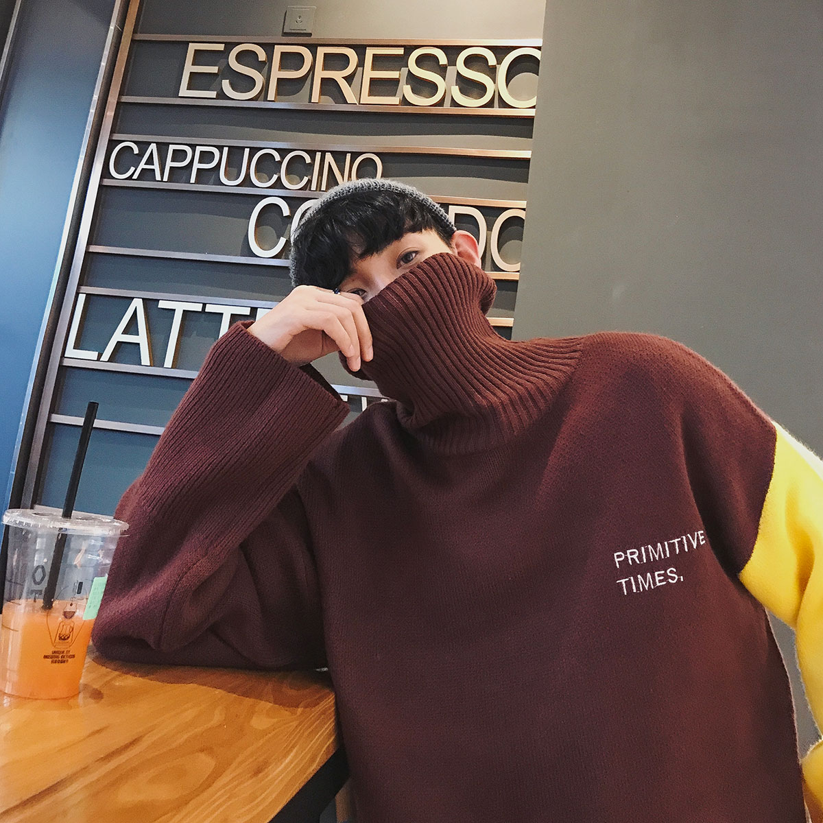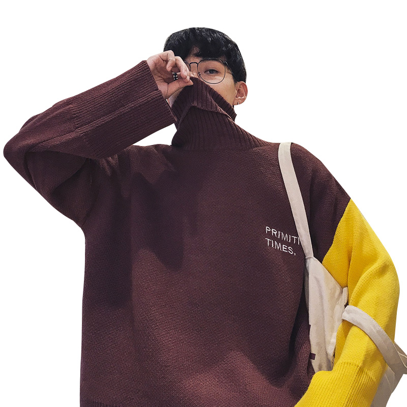 原宿風男士毛衣翻領寬松男裝港風秋季外套衣服韓版潮流圓領針織衫