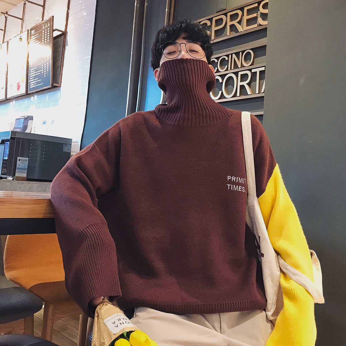 / 原宿風男士毛衣翻領寬松男裝港風秋季外套衣服韓版潮流圓領針織衫