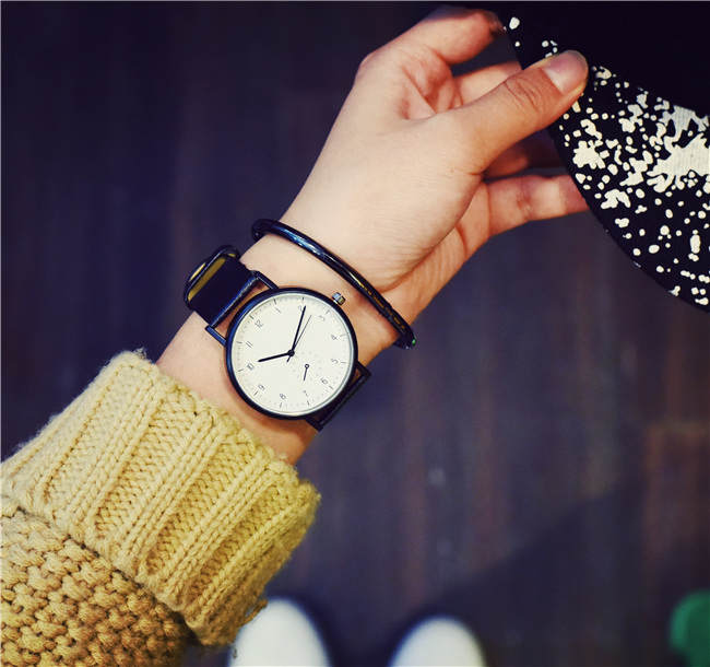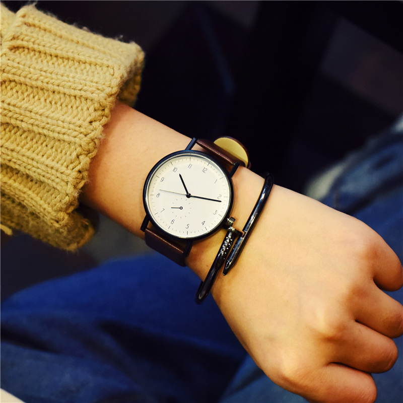超薄小秒盤情侶手表韓版簡約潮原宿風男女學生大盤阿拉伯數字表盤