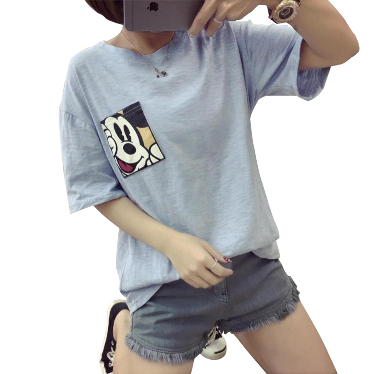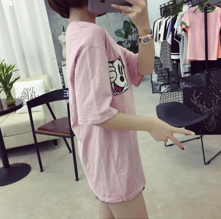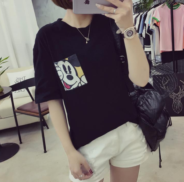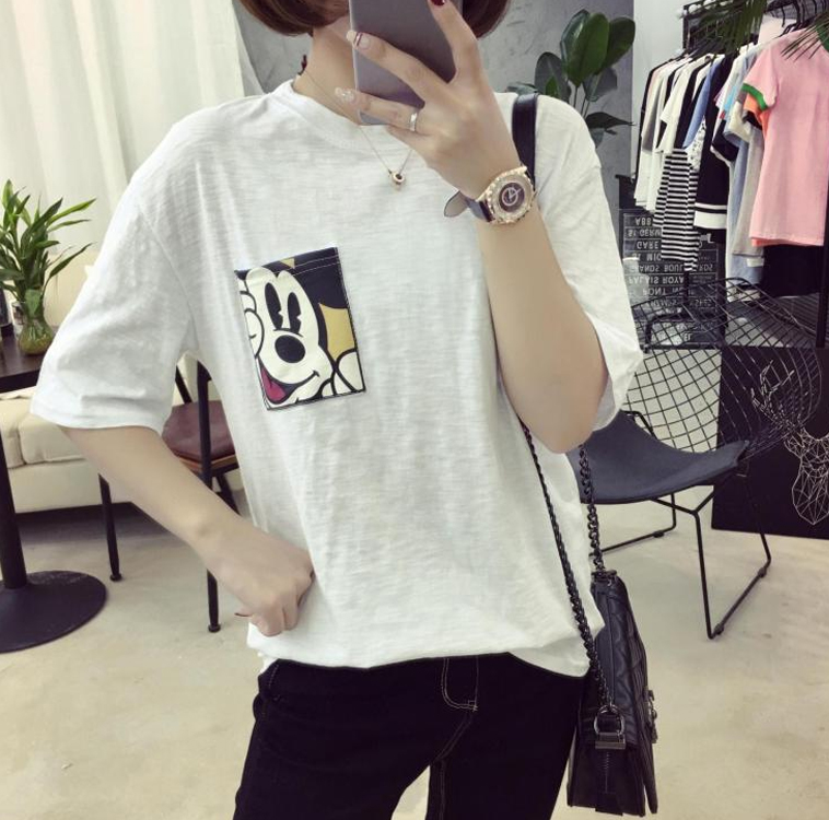 / 韓國卡通印花夏季上衣竹節棉寬松t恤女短袖夏裝體恤顯瘦大碼打底