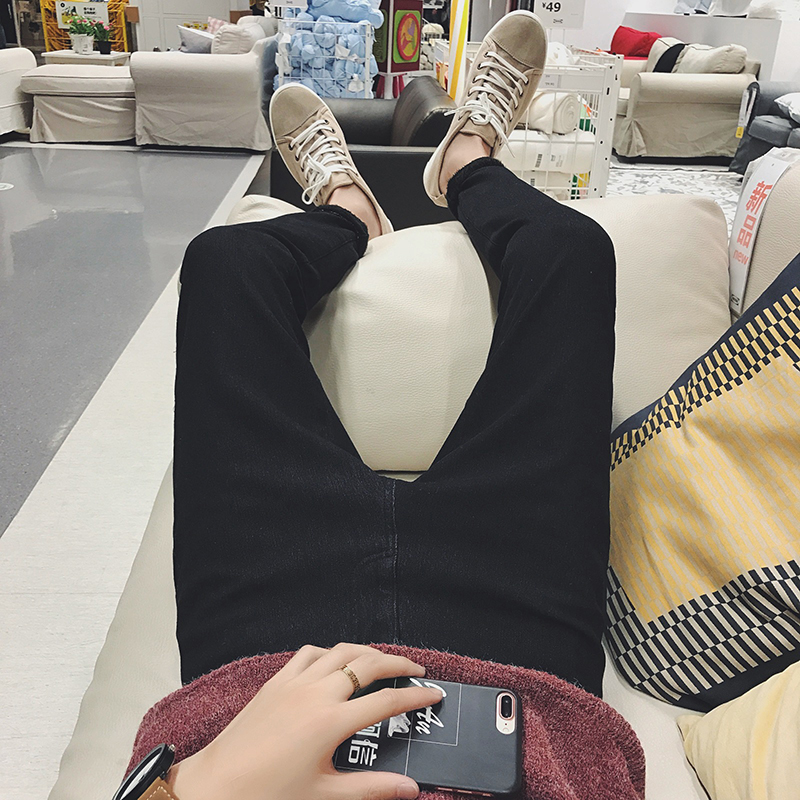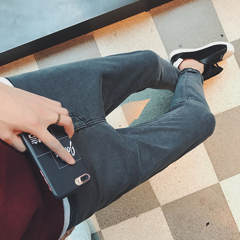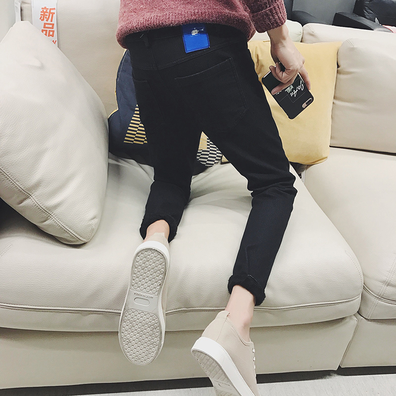 男裝貼標保暖加絨男士修身小腳男士牛仔褲加厚男褲