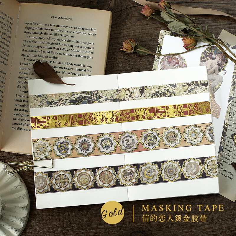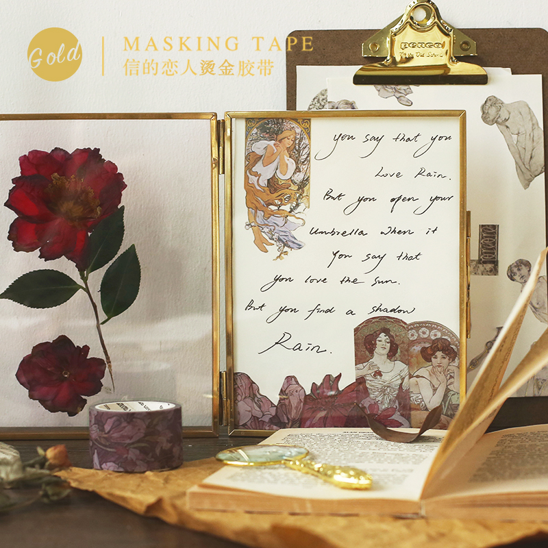 / 云木雜貨 穆夏史詩和紙膠帶復古燙金花人物裝飾手賬日記膠帶貼紙
