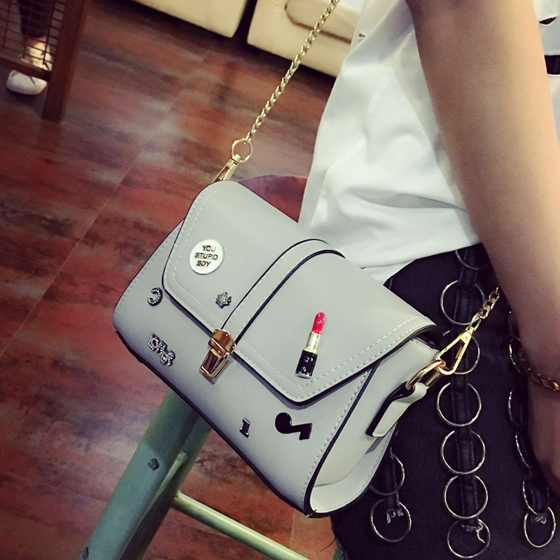 / 鏈條包包女新款潮迷你小方包徽章單肩女包小包韓版百搭斜挎包