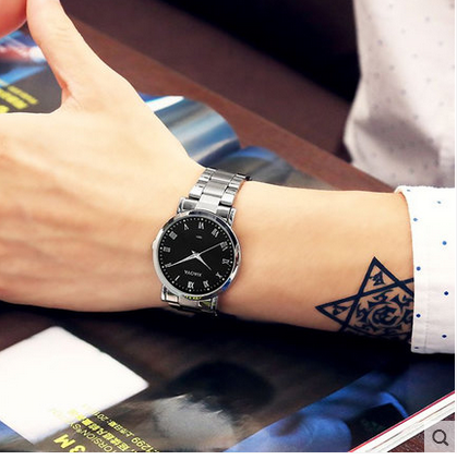 精鋼帶男士全自動機械手表男表真皮帶學生防水韓版手表女士石英表