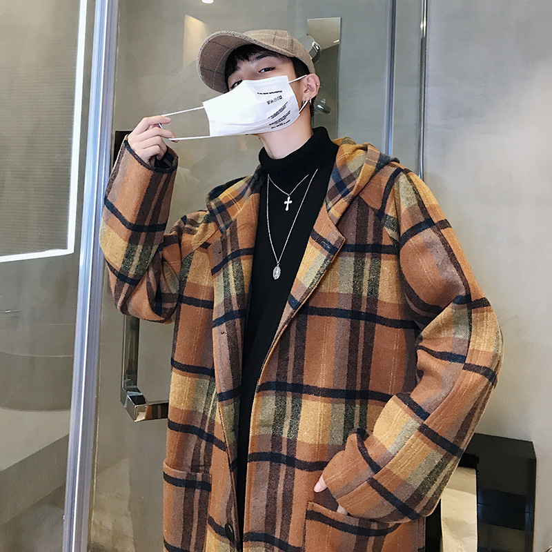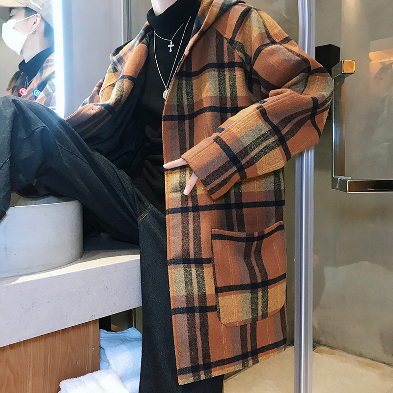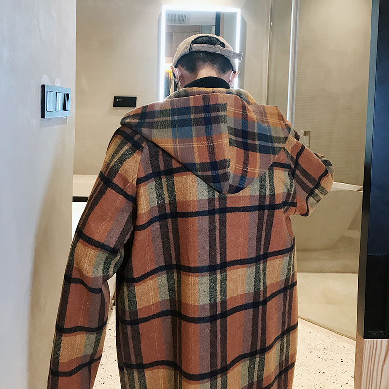 / 文藝男女店大衣男中長款秋季潮流格子毛呢外套韓版寬松休閑秋冬裝