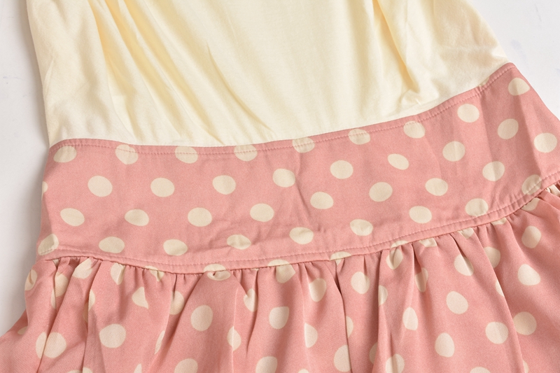 / 連衣裙貨淑女氣質拼色波點印花無袖側拉鏈設計夏裝女裙
