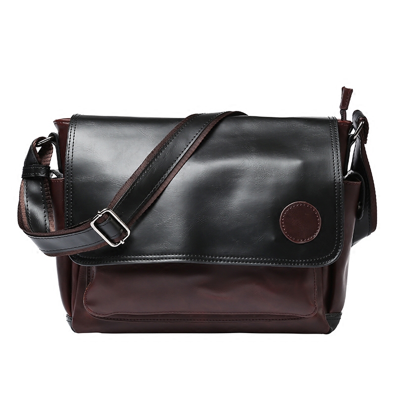 / 新款瘋馬皮韓版潮流男包單肩包斜挎包休閑男士背包郵差包上班包