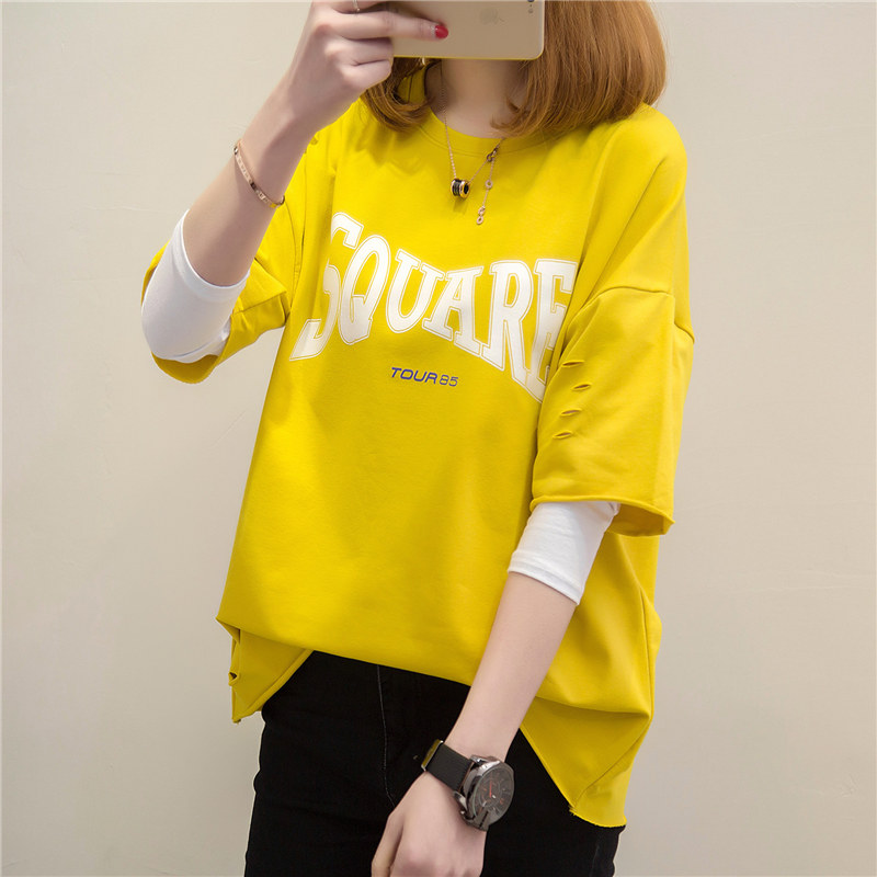 / 長袖t恤女寬松韓版百搭衛衣假兩件體恤衫上衣夏裝新款女裝潮