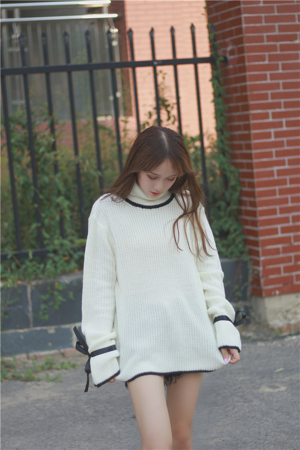 袖口非常特別的綁帶設計,下擺和袖口領口撞色相映襯,彰顯甜美可愛