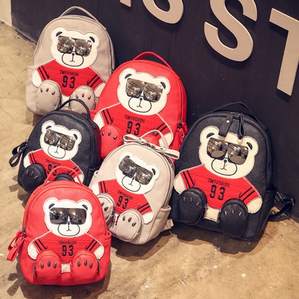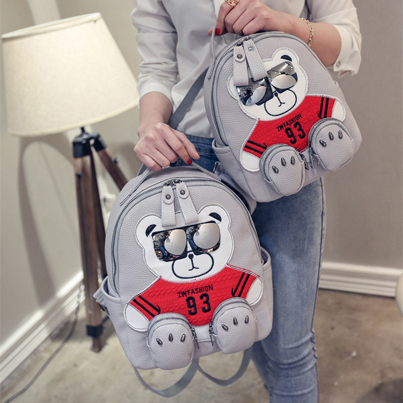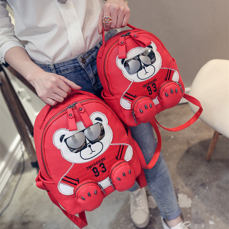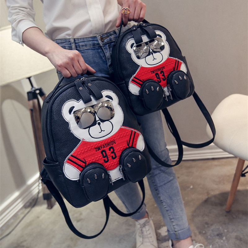 / 新款韓版卡通小熊雙肩包潮流女士背包個性眼鏡熊學院風書包