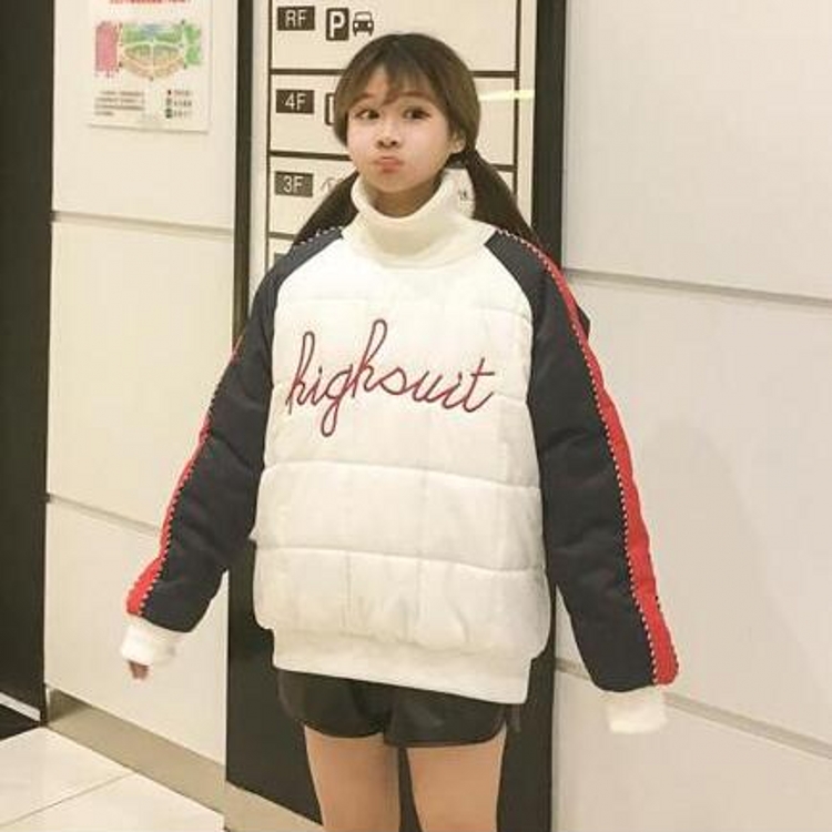 韓國原宿風冬款字母刺繡面包服保暖棉服女情侶款學生棉衣外套