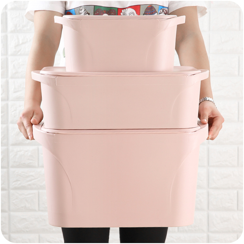 / 居家塑料衣服收納整理箱子大中小號有蓋雜物儲物箱可疊加飾品辦公