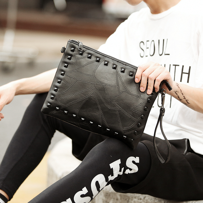 / 潮流韓版鉚釘男女手拿包潮流皮質時尚信封包軟皮單肩包斜跨包潮