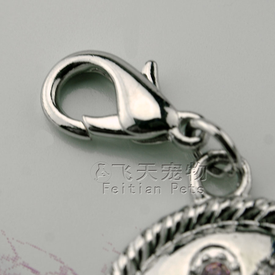 【產品說明】出口在原單寵物飾品,一共鑲嵌了8顆精致彩鉆,非常閃亮,外加合金彈簧掛鉤,可以直接掛在寵物項圈上或者項鏈上,做為寵物的標識牌、裝飾牌。