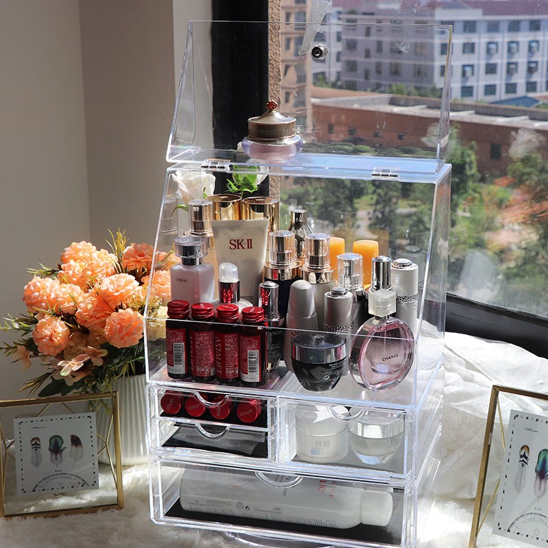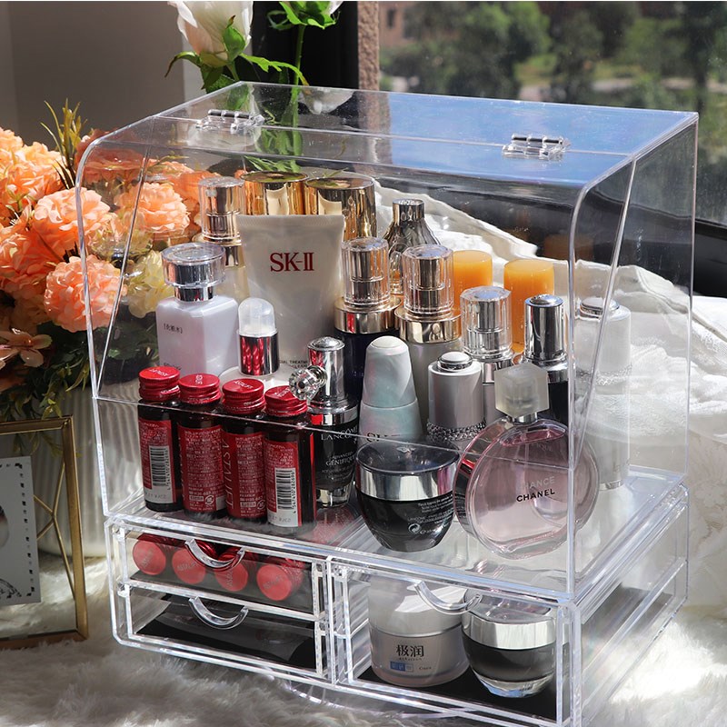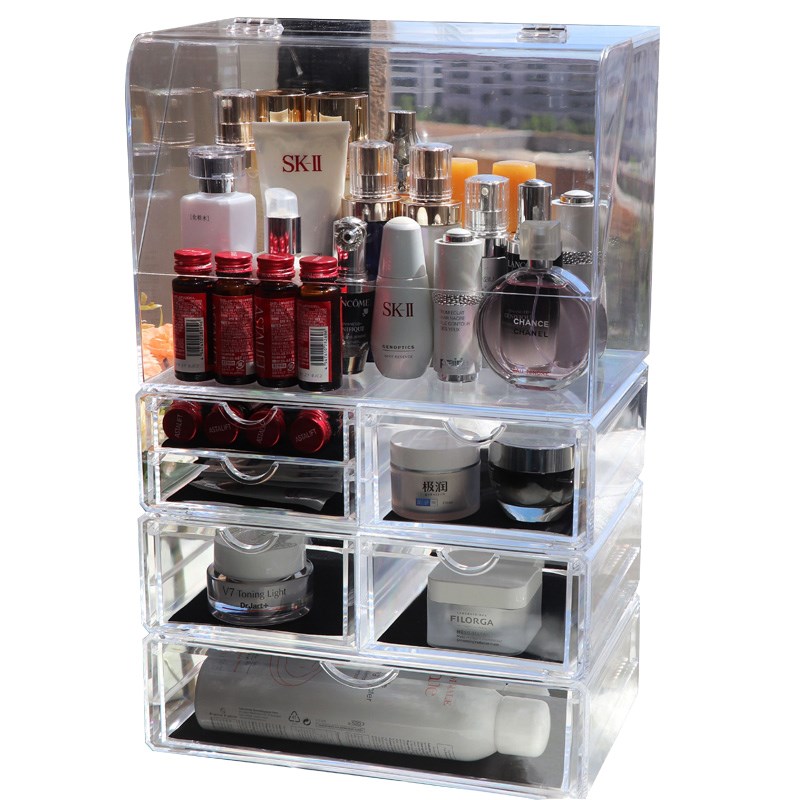防塵方頂化妝品收納盒透明組合亞克力護膚品有蓋桌面梳妝臺置物架