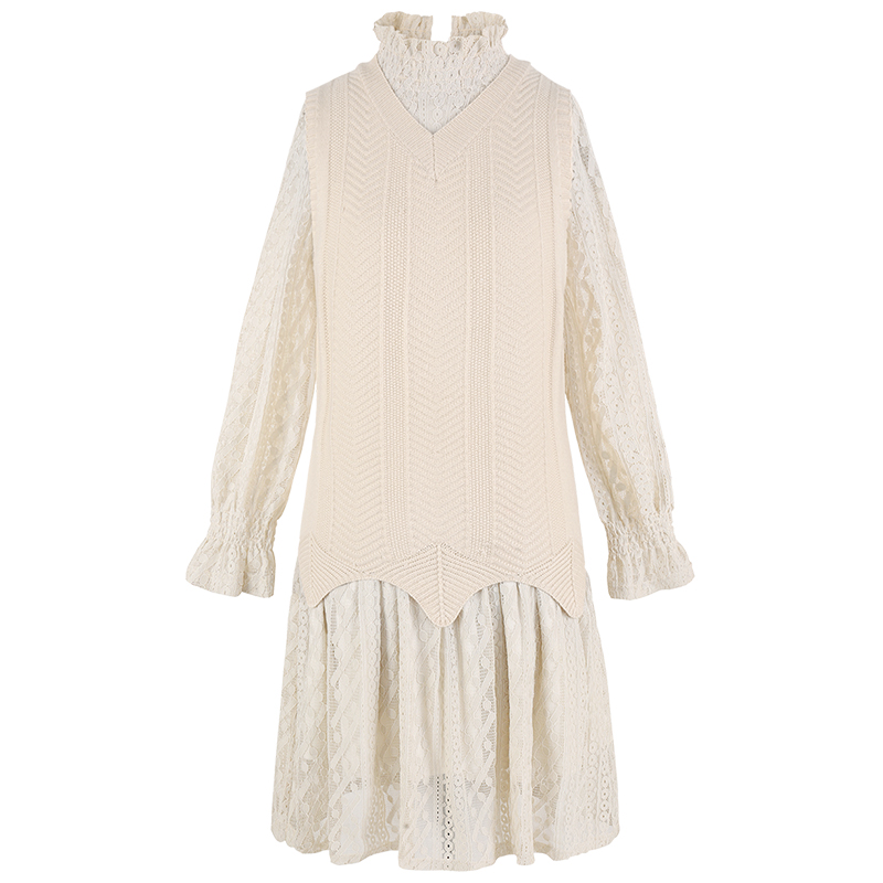 MG小象蕾絲連衣裙女秋冬新款寬松學生針織背心中長款氣質打底裙子
