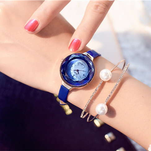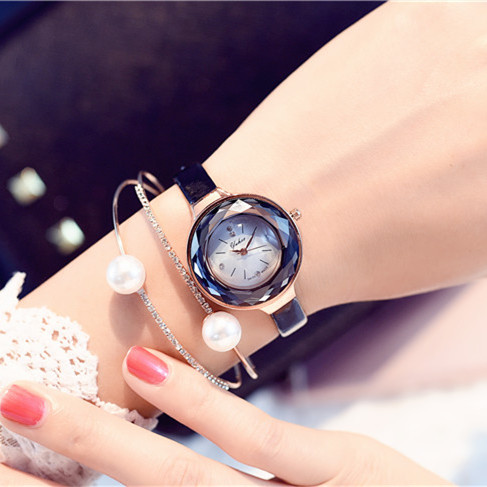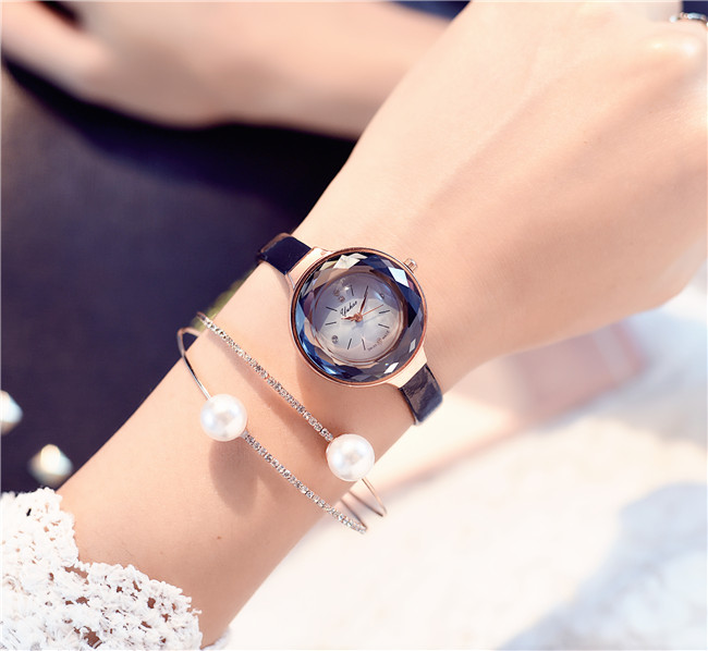 經典手表小表盤小巧迷你精致皮帶休閑女學生表時裝腕表藍色氣質款