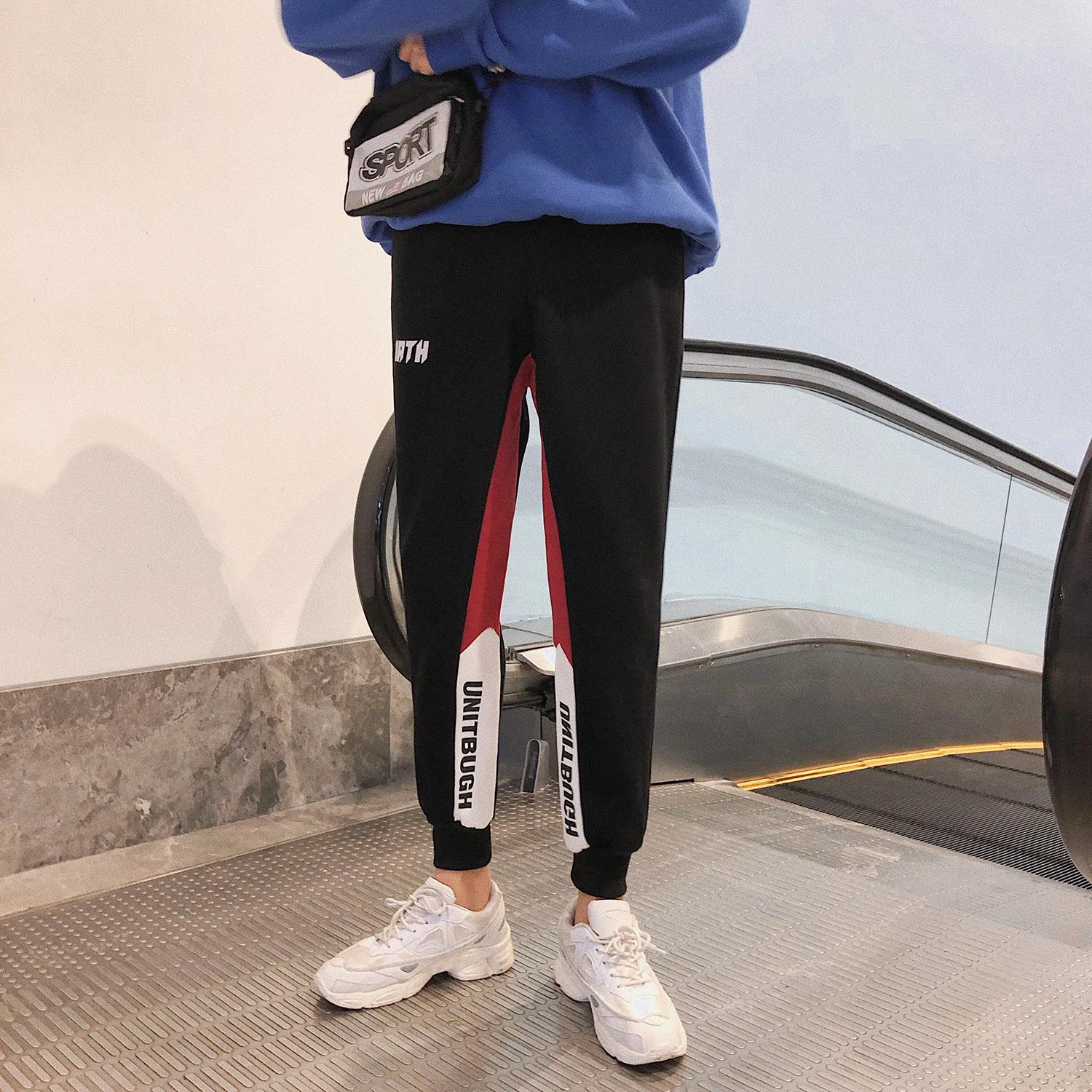 撞色褲子男士運動褲韓版潮流九分褲寬松休閑褲男裝長褲秋季運動褲