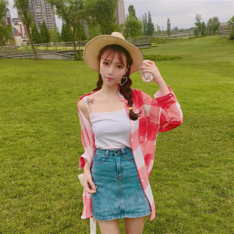 格子襯衫女裝夏新款小清新韓版寬松中長款防曬衣薄外套開衫上衣服