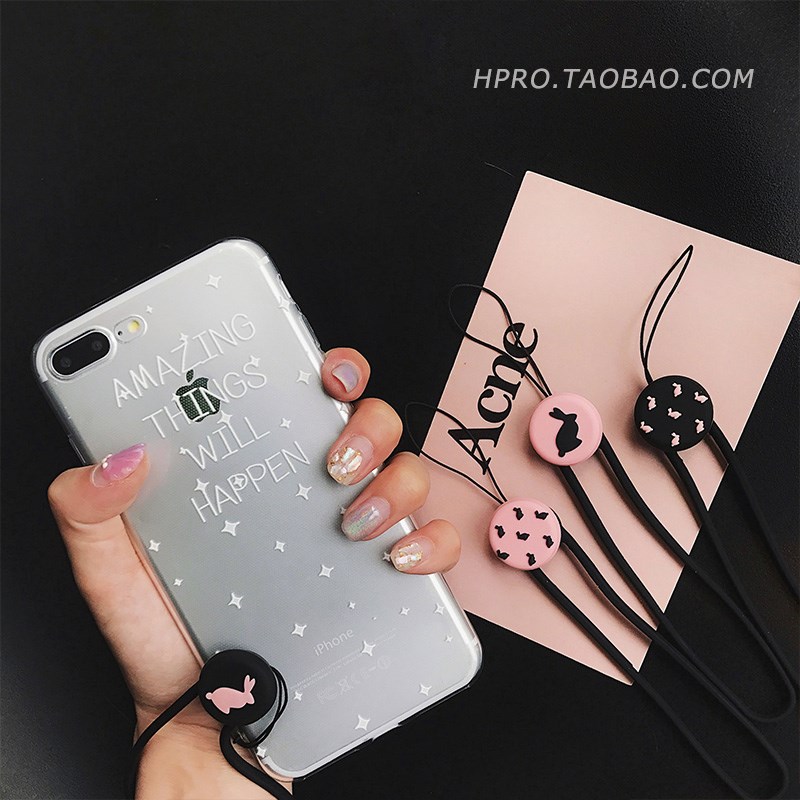 / 可愛兔子硅膠掛繩手繩 蘋果7手機掛件iPhone8/X/6s/plus個性女款